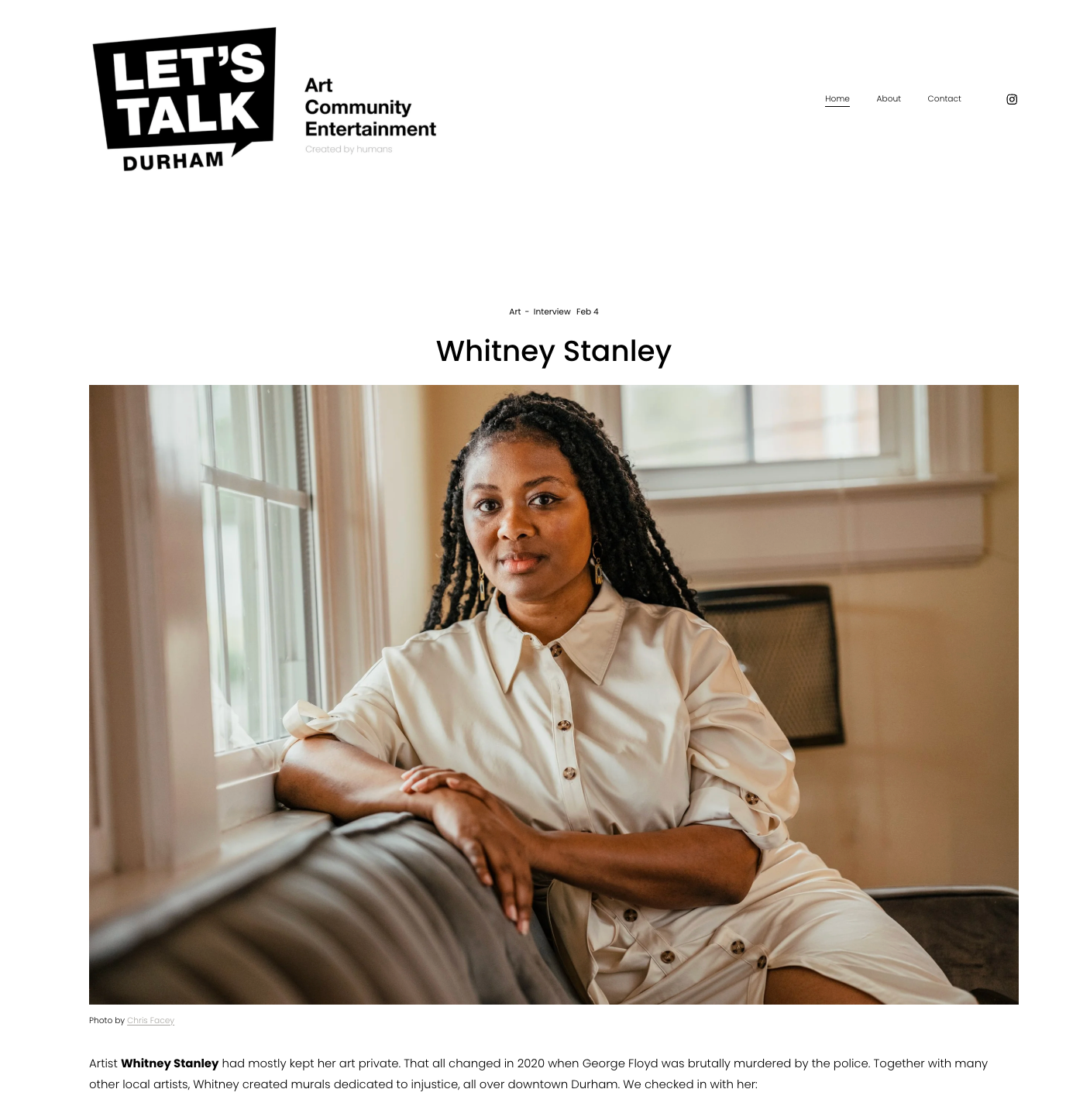 let’s talk durham - 02/04/23 Press Feb 4 Written By Whitney Stanley February 4, 2023 Interview featured in Let’s Talk Durham Magazine on February 4, 2023 Read More Whitney Stanley